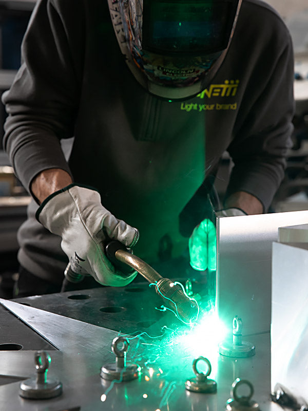 Con oltre 2000 mq di officine produttive e un team esperto, realizziamo internamente ogni insegna. Uniamo la cura artigianale dei dettagli a tecnologie industriali avanzate, per offrirti soluzioni visive di alta qualità, dal forte impatto estetico e dal prezzo competitivo.