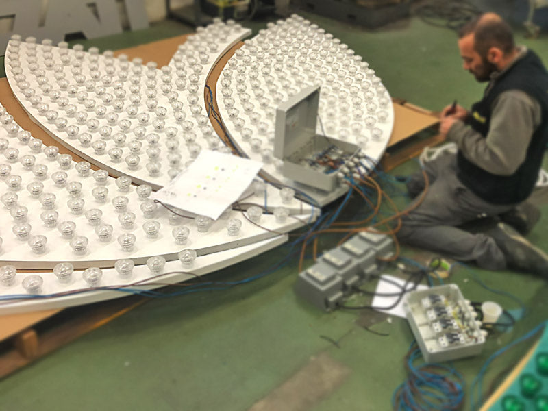 Siamo specializzati nella realizzazione di insegne luminose di grande formato sull’intero territorio nazionale. Seguiamo ogni fase internamente: ideazione, progettazione, produzione e installazione con mezzi e personale propri. Le nostre insegne sono certificate secondo le normative europee CE ed EN 1090, garantendo qualità, sicurezza e massima affidabilità.