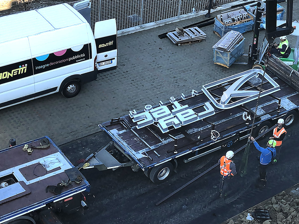 Siamo specializzati nella realizzazione di insegne luminose di grande formato sull’intero territorio nazionale. Seguiamo ogni fase internamente: ideazione, progettazione, produzione e installazione con mezzi e personale propri. Le nostre insegne sono certificate secondo le normative europee CE ed EN 1090, garantendo qualità, sicurezza e massima affidabilità.