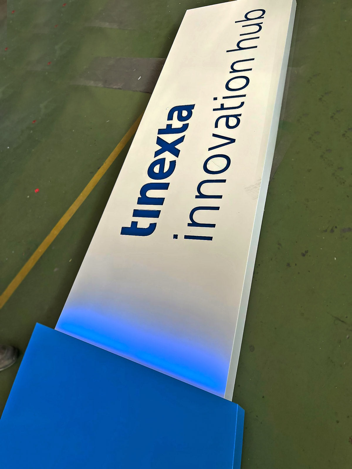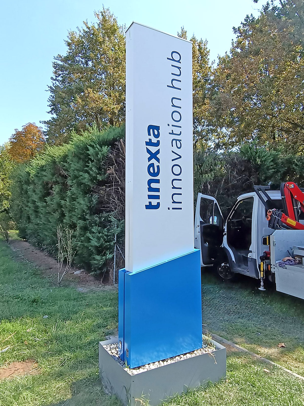 Tinexta Spa sceglie la nostra soluzione di totem luminoso aziendale modello Rocket per valorizzare il brand aziendale della sede a Correggio, Reggio Emilia.