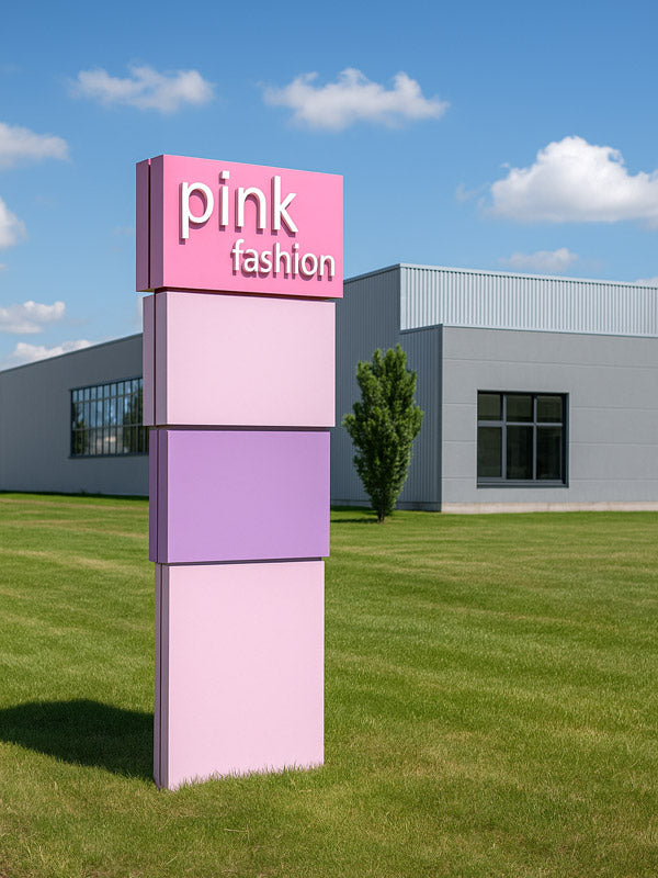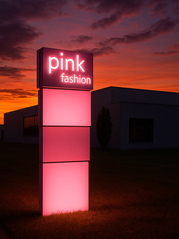 Totem dal design nuovo e suadente ispirato alla forma piramidale capovolta del Louvre. Prodotto concepito per aziende che desiderano una forte distinzione rispetto totem dalle geometrie più tradizionali. I moduli sono in alluminio fresato e scatolato con sporgenza diversa in modo da creare un aggetto rispetto il modulo sottostante. E' proprio andando a creare una sottile linea luminosa nella sporgenza del pannello che si crea un effetto luminoso notturno accattivante e nuovo. Il design del totem rimane nel complesso essenziale e molto pulito. Totem adatto per lo sviluppo di loghi orizzontali o quadrati.