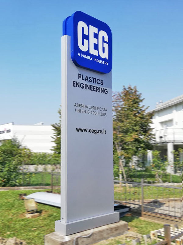L'azienda Ceg Srl di Correggio rafforza il visual esterno della propria sede installando il nostro totem luminoso pubblicitario dal design nuovo ed attraente.
